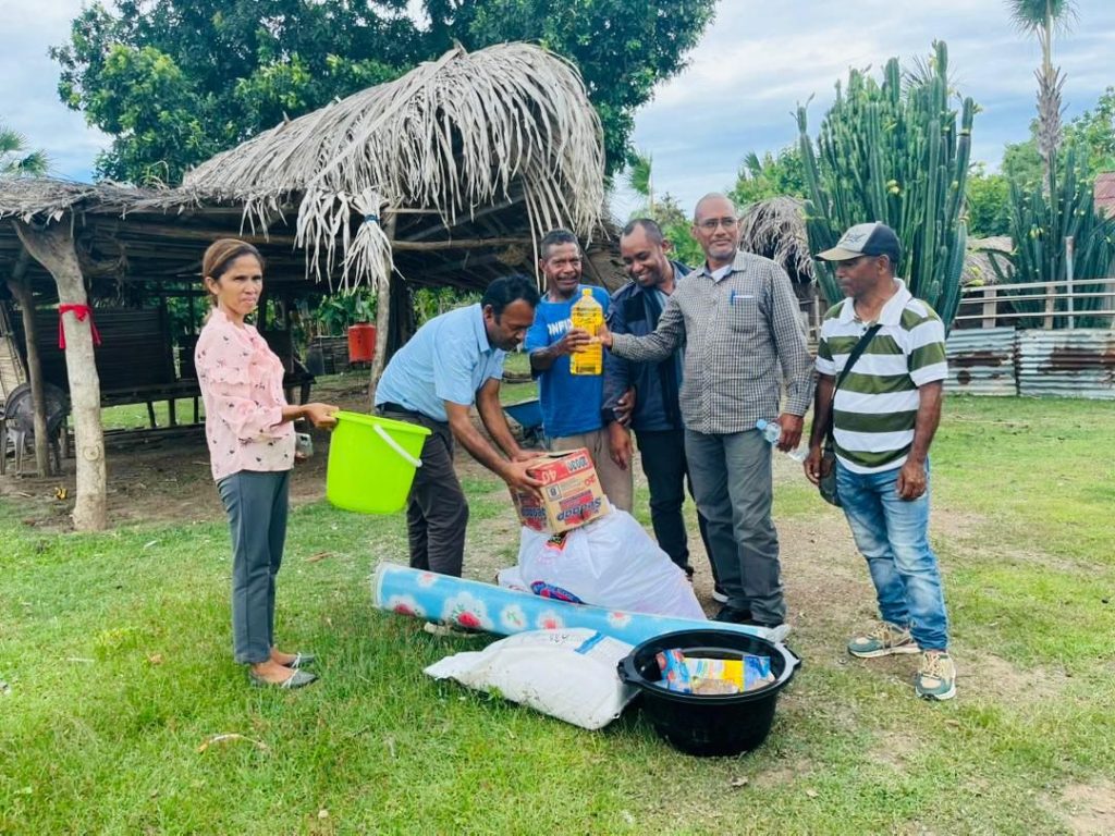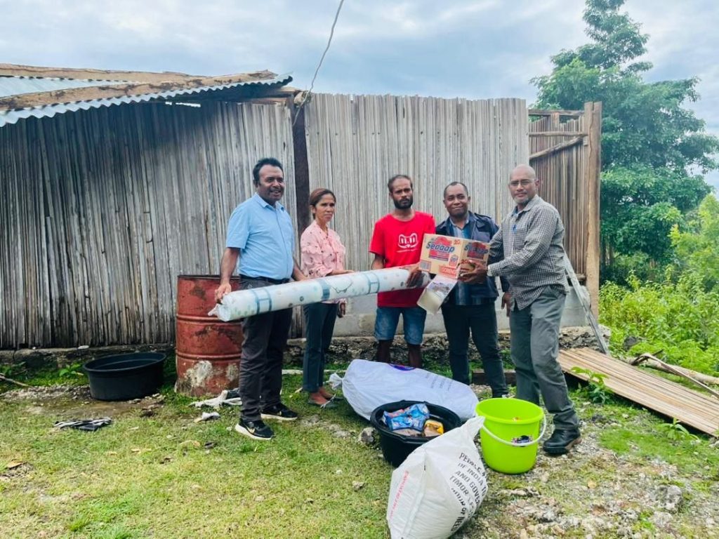 Secretario Munisipal Assunto Sociais e Organizasaun Sr. Agostinho Doutel Sarmento, hamutuk ho Diresaun Servisu Munisipal Dezastre Naturais, Autoridade Protesaun Civil (APC), fo Apoiu Emergensia ba Familia Afeita Dezastre Naturais (Anin-Sobu), Uma- kain 4 iha Postu Administrativu Hato-Udo, Munisipio Ainaro.