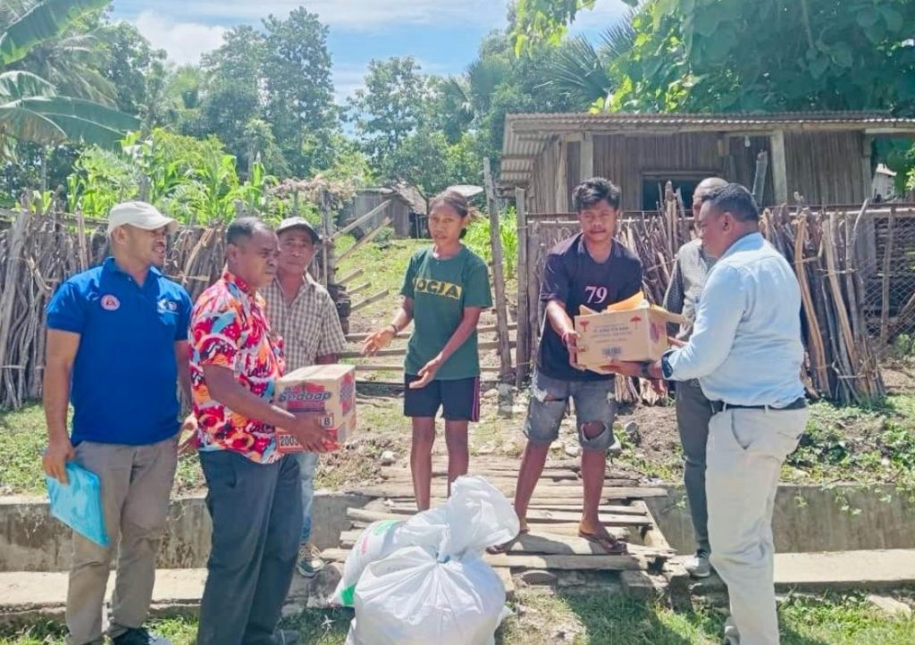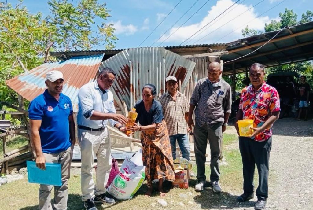 Secretario Munisipal Administrasaun e Finanasas Senhor Ruivo Barros Magno hamutuk ho Diresaun Servisu Munisipal Dezastre Naturais, Administrador Postu Administrativu Hato-Udo fo Apoiu Emergensia ba Familia Afeita Dezastre Naturais Uma- kain 3 , iha Postu Administrativu Hato-Udo, Munisipio Ainaro.