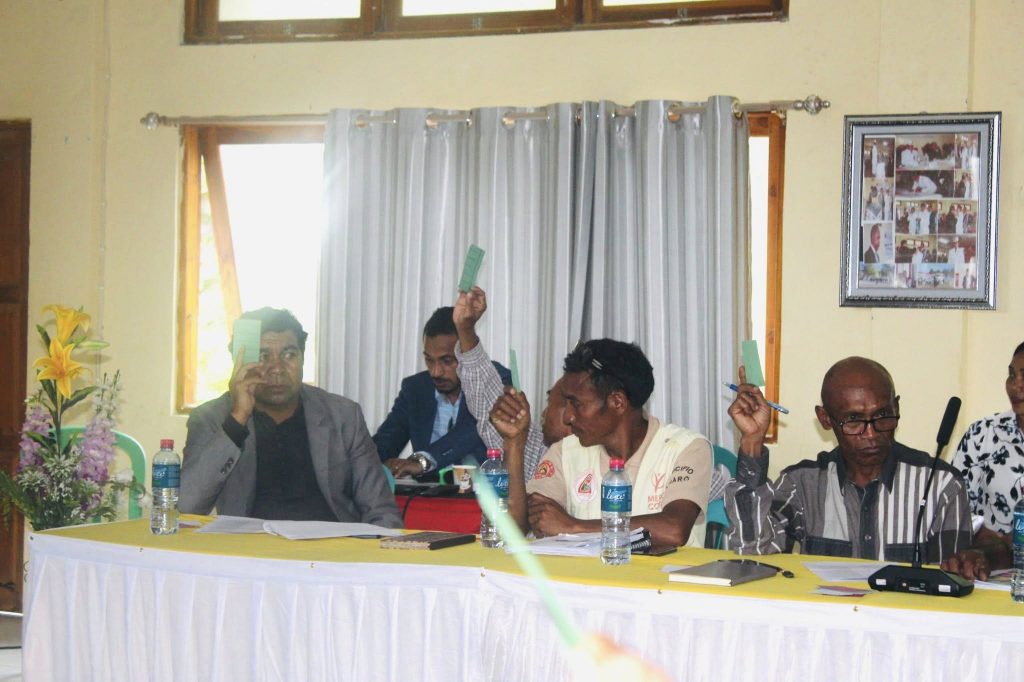 Nune’e mos aprezentasaun husi Diretor Servisu Munisipal Agensia Planeamento Kona-ba Planu Dezenvolvimento Munisipal. No fo apresiasaun husi Exelencia Presidente Autoridade Munisipio Ainaro , no mos Membro Konselho Koordenasaun Munisipal . Hafoin Votasaun ba Planu Dezenvolvimento Munisipal 2025 – 2030, ho Alfavor 32, Kontra 0, Aptensaun 0.