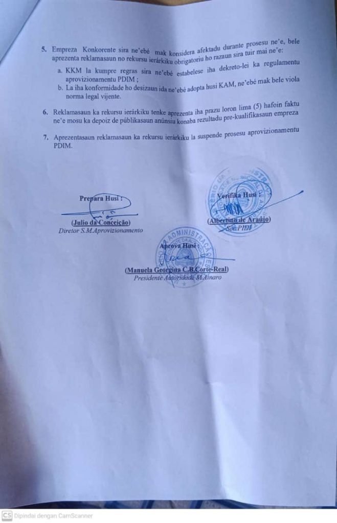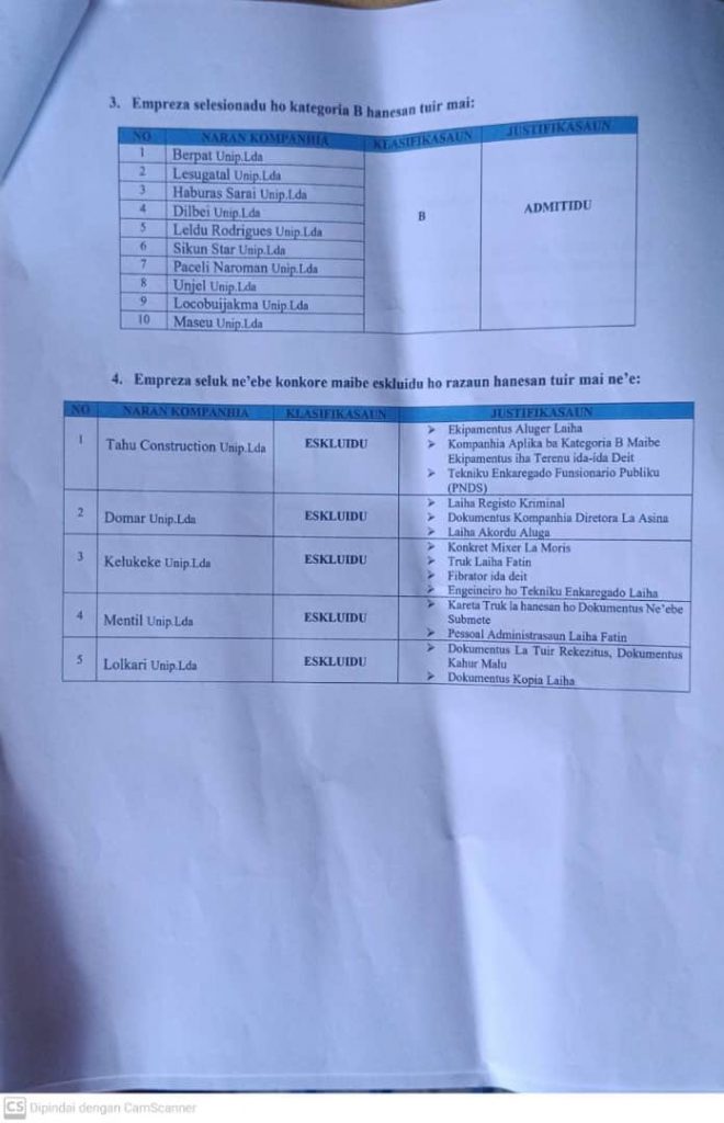 ANUNSIO REJULTADU PRE-KUALIFIKASAUN BA KOMPNHA IHA MUNICIPIO AINARO