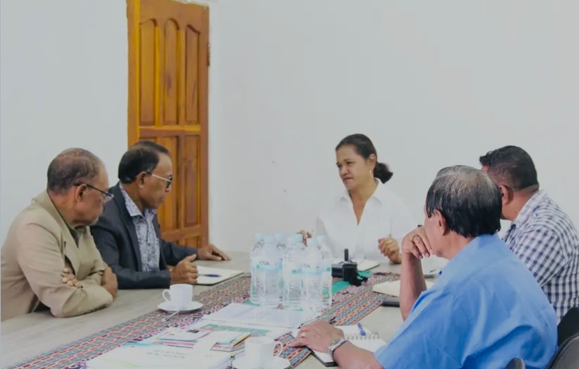Exelensia Presidente Autoridade Munisipio Ainaro Sra. Manuela Georgina Carmo Bucar Corte-Real, Akompanha husi Secreatrio Munisipal Administrasaun e Financas, Xefe Gabinete PAM, hala’o enkontru ho Sua Exelensia Secretario Estado dos Veteranos Cesar dos Santos da Silva ‘Merak’, Presidente Konselho Veteranos Munisipio Ainaro, ko’alia kona ba iha Futuro sei hari’i Monomentu Saudozu Venancio Ferraz iha Munisipio Ainaro.
