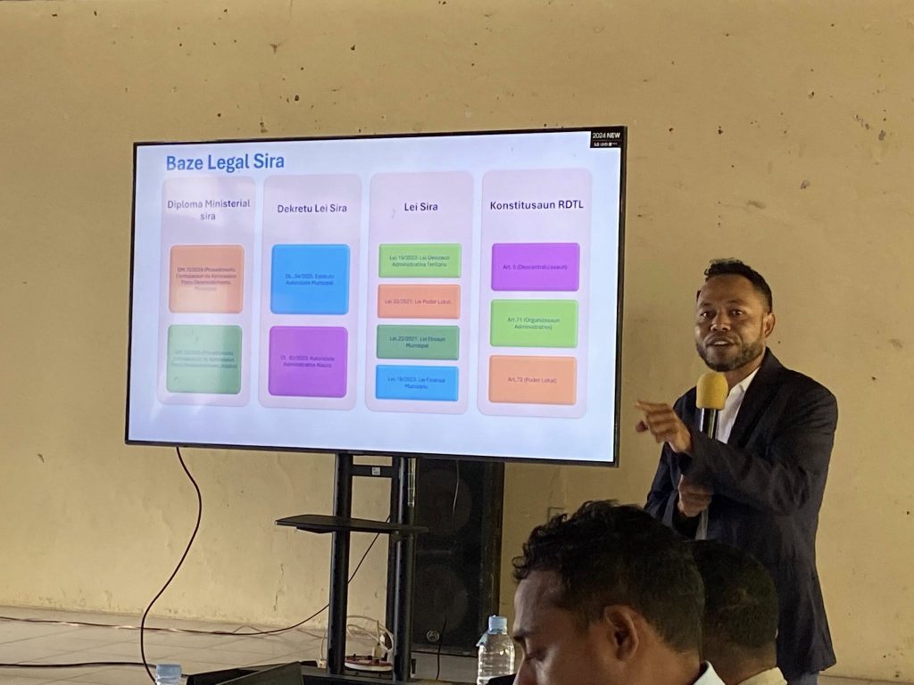 Diretor Nasonàl Apoiu Dezenvolvimentu Munisipal, Sr. Januario Magalhães hateten fo formasaun ba kargu Direjente Autoridade Munisipio Ainaro, hodi rona sira nia servisu, no gestaun planeamentu Munisipal liga liu ba iha Dekreitu Lei 34/2025, sexta alterasaun husi Dekreitu lei 84, konaba ba estatuto Administrasaun Munisipal Autoridade Munisipal. No mos konaba karakter tekniku dialogo aktivu entre aprezentador no partisipante sira. Alende ne’e mos iha loron segundu sei halo Vizita ba Diresaun servisu Munisipal Agensia Planeamentu, Diresaun servisu Munisipal Rekursu Humanos, Diresaun Servisu Munisipal Finanças no Diresaun Servisu Munisipal Aprovizionamentu .
