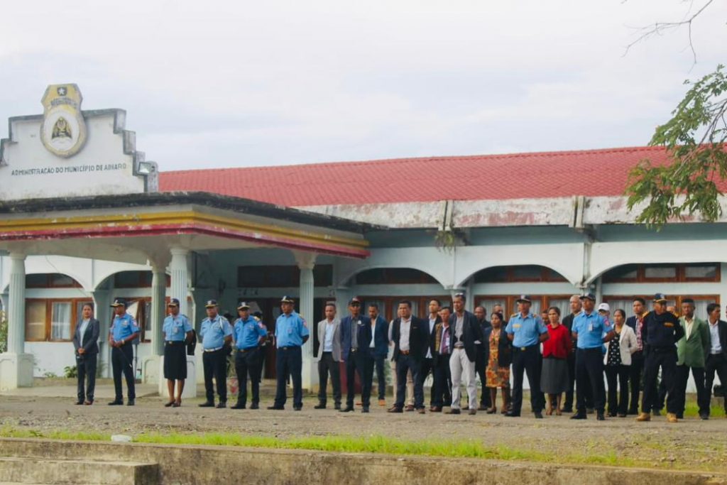 Enkuantu iha Serimonia ne’e, Partisipa husi Secretario Servisu Munisipal, Diretores Servisu Munisipais, Delagasaun Teritorial, komandante PNTL Munisipio Ainaro ho Estrutura, Xefe Departamento Administrador Postu Administrativu Ainaro, no Funsionario Publiku.